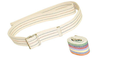 Gait Belts are made of heavy duty, 2" (5,1 cm) wide cotton or polypropylene (#9 Royal Blue) webbing to provide a secure hand hold for therapists and caregivers while working with their patients. Color coding by department or floor helps to control cost and expense of replacing missing belts. It can also be used to identify when a patient may have wandered from a restricted area. Available in 6 colors and 8 sizes. Steel, nickle chrome plated buckle. Metric conversion: (32" = 81,5 cm) - (36" = 91,5 cm) - (40" = 101,5 cm) - (44" = 110,2 cm) - (48" = 121,9 cm) - (54" = 137,1 cm) - (60" = 152,4 cm) and (72" = 182,9 cm). These Gait Belts are not made with natural rubber latex.