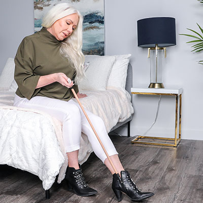 The FabLife Hip Kit is the perfect set of accessories for those who need assistance in their day-to-day tasks. Designed to help users avoid bending at the hip and improve daily living, the hip kit is a variety of selected tools that are vital in assisting patients with bathing, dressing, reaching and other activities. A total package that's ideal for those undergoing hip, knee and back rehabilitation. All the items in the kit help users regain and maintain their independence as well as prevent them from bending, kneeling, reaching and twisting. Included in the kit are a 26" reacher, a contoured sponge with a 17" handle, a flexible sock aid and a 24" metal shoehorn. This kit is a terrific asset to those moving slowly and carefully pre- and post-surgery. The 26" reacher is for people who need to grab items from high (shelves) and low (under the bed). Prevents bending, kneeling or stretching. The contoured sponge with a 17" long handle allows individuals to wash themselves and not feel dependent on anyone else. The flexible sock aid helps users in placing socks on their feet and pulling them up, preventing bending, pulling and straining. The kit also includes a long and sturdy 24" metal shoehorn which assists in putting on shoes, helpful for those with a limited range-of-motion.