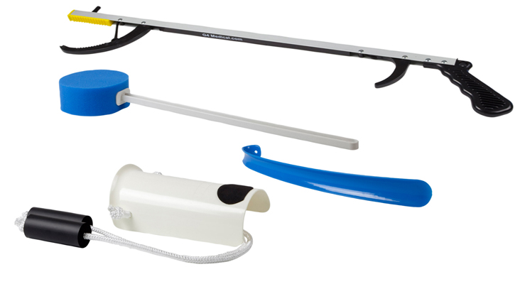 FabLife Hip Kit: 26" reacher, contoured sponge, formed sock aid, 24" dressing stick |