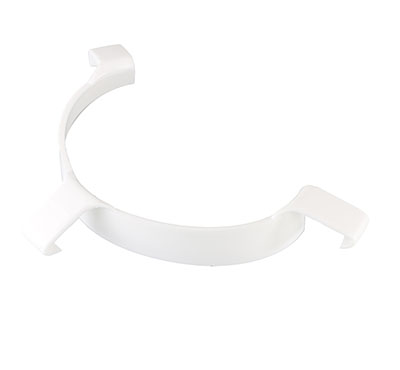 Prevents food from being pushed off the plate. Concave wall assists in guiding food onto the utensil. Secured to the plate with an internal groove. Small size fits plates with a diameter of 8"-9 1/2". Large size fits plates with a diameter of 9"-11". Dishwasher safe to 185º. Made in the USA of FDA approved material. Does not contain lead, latex, BPA, phthalates or polycarbonates.