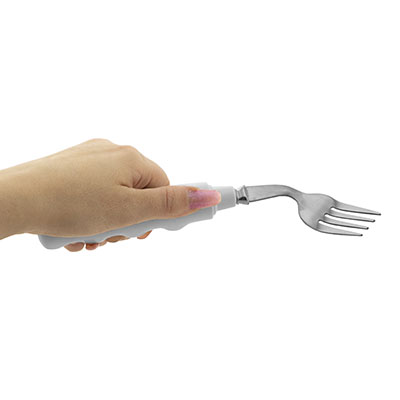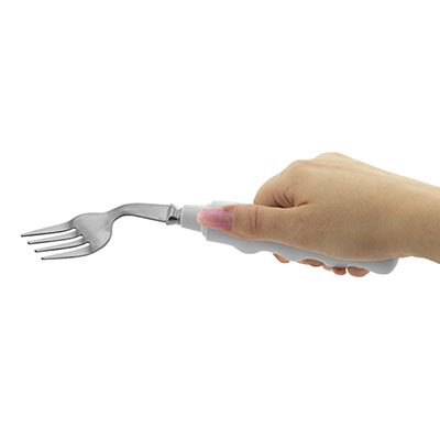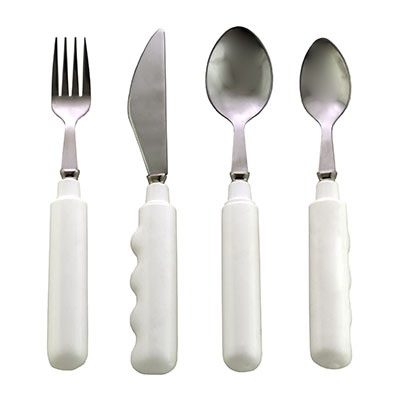 Cutlery with a grip designed to give independence at meal time. The knife blade which has been designed to be useful, both as a regular dinner knife and as a rocker knife. It has a curved cutting edge making it a suitable knife for the one handed person. These utensils allow maximum user control with minimum effort. Useful in both institutions and at home. The comfort grip has a soft vinyl coating with finger indentations for a secure grip. Suited for persons with poor grasp with a 7/8" (22mm) diameter grip. Light weight, 85 grams (3oz) each. Dishwasher Safe. Latex Free.