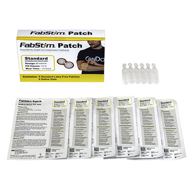 The FabStim Iontophoresis Patch is a great option for clinicians looking to rapidly provide extended pain relief. This easy-to-use, non-invasive technology works by delivering safe and pain-free treatments directly to the affected area without the use of external batteries or wires. The patch makes it easier than ever before to access pain relief by administering controlled electric currents to the treatment site without the need for bulky cables and plugs. Use it to treat most areas of the body, including the elbows, knees, wrists, feet and shoulders. The patch is made from a flexible, breathable material that is comfortable against the skin, making it ideal for extended use. The Standard FabStim Iontophoresis Patch allows for a dosage of up to 80 mA-min to be delivered over a 14-hour period. This kit includes six (6) complete treatments per box. Each treatment includes a patch and a saline vial. Please note, this item can only be purchased by a medical physician or other practitioner that is licensed to use or prescribe this device.