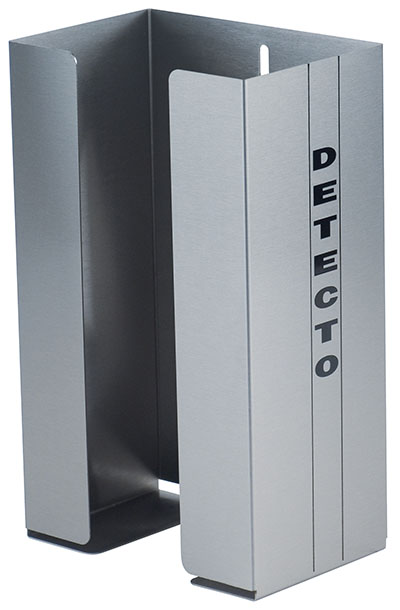 Conserve counter space with stainless steel universal glove box holders. The open design allows you to see what size or type of glove is being dispensed. The holders accommodate most glove boxes and are universal enough to be used for tissue holders where counter or shelf space is limited. Models capable of holding one, two, or three boxes of gloves. Includes Detecto's lifetime guarantee on all holders, installs easily in seconds. Private labeling available.