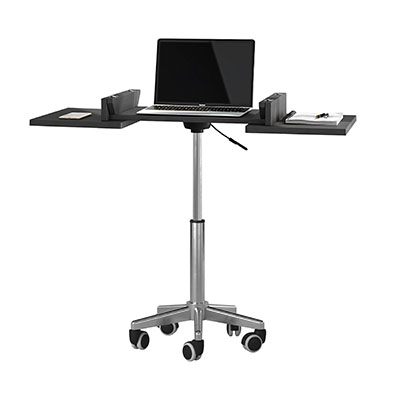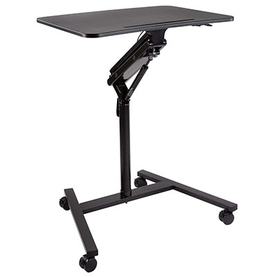 This portable desk offers an easy way to set up and position your computer or A/V equipment. The locking casters provide mobility, and the tilt feature gives you the ability to adjust your equipment to an ideal position. The gas spring makes adjustments up and down a breeze. Enjoy this well built, sturdy stand for years to come.