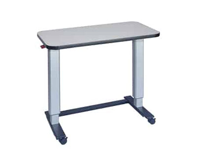 This Multi-Purpose Table is both a versatile and unique patient orientated table. It is designed for patients undergoing exercise, physical and rehabilitation therapy to regain strength and range of motion. The 13-inch height range (30″ - 43″) allows patients to use the table either when sitting, standing, ambulating or in a wheelchair. This is due to the dual gas spring combined with an unweighted tabletop offering effortless lift height adjustment. Once at the desired height, the position is "Auto-Locked" and can hold up to 250 lbs. Easily adjust the height back down or up with the dual hand control levers that unlock the top. The unique cut out allows for better access for those patients who are in wheelchairs. Made with brushed aluminum dual telescoping legs, the Multi-Purpose Table is durable enough to withstand daily rigorous use. It has a black powder coated welded U-shaped base, Folkstone Gray laminated top with black T-molded edge banding and round corners that prevent wall damage. Use the 4 mounted 2" diameter twin-wheel black nylon locking casters for hassle-free transport of the table around any hospital, clinic or medical facility. This table is proudly made in the USA.