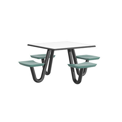 The Anchor Table is the perfect choice for any environment. Constructed of high impact "no break" polyethylene and designed with a rotationally molded design for increased strength, this durable product is perfect for any residential institution, school or university, detention center, public safety facility and more. The seat configurations range from 3 to 8 seats and are available in aqua, black, blue grey, brown, burgundy, gray, green, indigo, midnight blue, sand, slate blue and stone grey. The heavy-duty table is designed with a laminate top that is seamless one-piece design with extreme surface strength, high impact resistance, along with a rounded edge for additional safety and comfort. Attached to the legs are tamper-resistant screws for increased security and easy maintenance. The tables also feature a continuous seam welded frame structure that consists of 3" diameter 14-gauge powder coated steel with 11-gauge steel seat supports. ADA Compliant tables are manufactured with one less leg to meet building code requirements. Each table is proudly made in the USA! Floor bolting is recommended for added stability. This square table measures 42" by 42" and can seat up to 4 people.