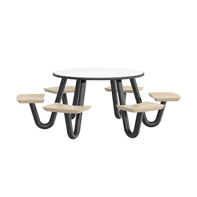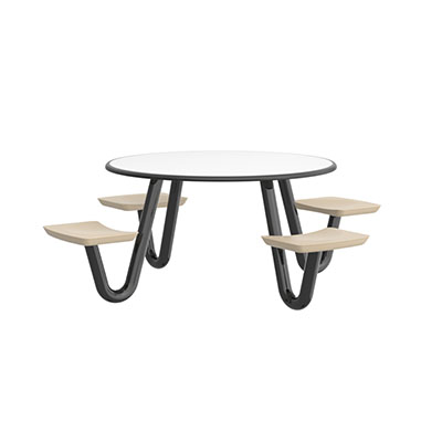 The Anchor Table is the perfect choice for any environment. Constructed of high impact "no break" polyethylene and designed with a rotationally molded design for increased strength, this durable product is perfect for any residential institution, school or university, detention center, public safety facility and more. The seat configurations range from 3 to 8 seats and are available in aqua, black, blue grey, brown, burgundy, gray, green, indigo, midnight blue, sand, slate blue and stone grey. The heavy-duty table is designed with a laminate top that is seamless one-piece design with extreme surface strength, high impact resistance, along with a rounded edge for additional safety and comfort. Attached to the legs are tamper-resistant screws for increased security and easy maintenance. The tables also feature a continuous seam welded frame structure that consists of 3" diameter 14-gauge powder coated steel with 11-gauge steel seat supports. ADA Compliant tables are manufactured with one less leg to meet building code requirements. Each table is proudly made in the USA! Floor bolting is recommended for added stability. This table is round with a 42" diameter and can seat up to 4 people.