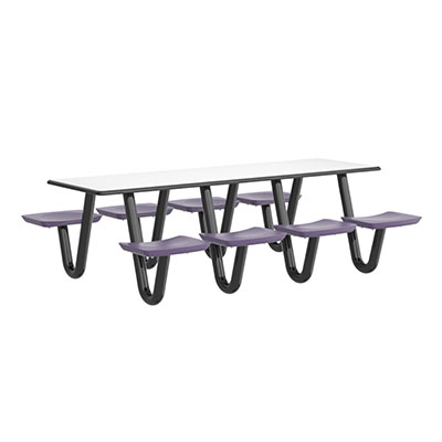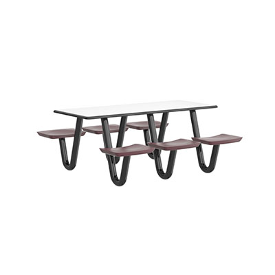 The Anchor Table is the perfect choice for any environment. Constructed of high impact "no break" polyethylene and designed with a rotationally molded design for increased strength, this durable product is perfect for any residential institution, school or university, detention center, public safety facility and more. The seat configurations range from 3 to 8 seats and are available in aqua, black, blue grey, brown, burgundy, gray, green, indigo, midnight blue, sand, slate blue and stone grey. The heavy-duty table is designed with a laminate top that is seamless one-piece design with extreme surface strength, high impact resistance, along with a rounded edge for additional safety and comfort. Attached to the legs are tamper-resistant screws for increased security and easy maintenance. The tables also feature a continuous seam welded frame structure that consists of 3" diameter 14-gauge powder coated steel with 11-gauge steel seat supports. ADA Compliant tables are manufactured with one less leg to meet building code requirements. Each table is proudly made in the USA! Floor bolting is recommended for added stability. This rectangle table measures 30" by 96" and can seat up to 8 people.