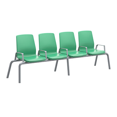 Structured Seating, 4 Seats, No Arms, Bolt Down, Green: