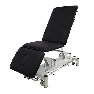 To create your own CanDo Hi-Lo Treatment Table, you would need one-part patient care and comfort, one-part modern and contemporary design and one-part high-tech engineering. Add in some style and a dash or two of convenience and efficiency and you'd be ready to go. This is a top-line table that is noticeably different. It's economical, it's easy to use and it features so many of the big and little things that elevate it from the ordinary. Measuring a very spacious 78" x 30" x 20", the table raises and lowers within a height range of 20 inches. This is a three-section table with both the backrest and the headpiece able to be adjusted. The head of the table is its own section that can raise or lower from -55 to +45 degrees to aid in patient comfort and clinician ease. The leg section can be raised up to 75 degrees to find your perfect position. The removable nose/face cushion and plug provide comfort when lying face-down. The height is optimized as well, as it relieves the clinician from repeated bending. The table has a weight capacity of 550 lbs. and construction is sturdy with a durable, white powder-coated steel frame and self-lubricating pivot points. The table-top features a seamless, rounded-corner, upholstered mat that offers 2" of ultra-firm comfortable padding. The height can be adjusted via smooth electric adjustment with the 360-degree foot bar. The quiet-glide 3" (7.6 cm) casters allow easy repositioning. Comes with a black upholstered top only. Cleaning the upholstery is easy and only requires water and a mild detergent. The warranty shall remain in effect for 5 years (60 months) for the structure and 3 years (36 months) for the base frame and motor.