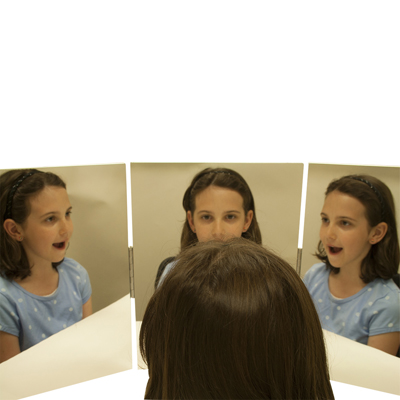 Ultra-Safe glassless mirrors are designed for use by speech therapists and their patients. The glassless mirrors provide a distortion-free image with its highly optical reflective film. The film is lighter and brighter than glass mirrors and are a perfect glass alternative. The single panel portable mirror has a protective cover that opens to form a desk. Triple panel portable mirror allows the patient to view each sound formation from any angle.