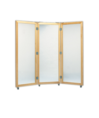 Plate glass mirrors are an invaluable aid to Physical, Speech, Occupational Therapy and Sports Medicine Departments. May be used in a variety of ways: in exercise and weight rooms, or with parallel bars and training stairs. Generously sized, distortion-free 1/4" plate glass mirrors are mounted in natural finish hardwood frames. Mobile units furnished with 2" casters.