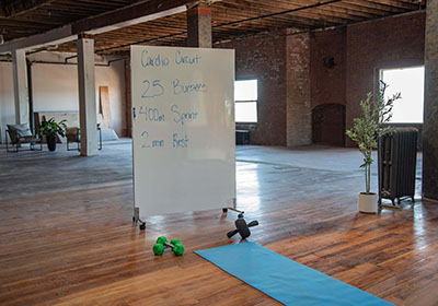 Glassless Mirror, Rolling Stand and Whiteboard Back Panel, 60" W x 96" H |