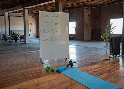 Glassless Mirror, Rolling Stand and Whiteboard Back Panel, 60" W x 96" H: