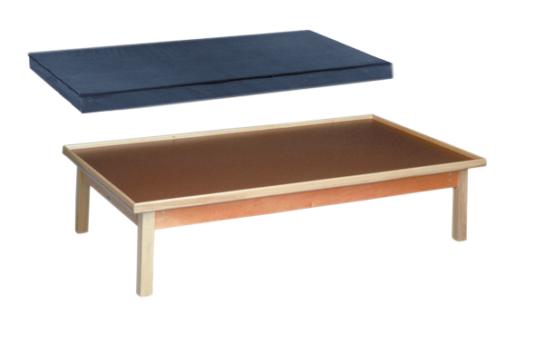 Hi-low mat tables have been specially designed to provide an ample exercise area to the height most convenient to wheelchair and ambulatory people. Raised Rim Mat Tables feature a 1 1/4" rounded raised rim. The table surface is resin free to prevent damage to the accessory mats. 2" thick mats sold separately.