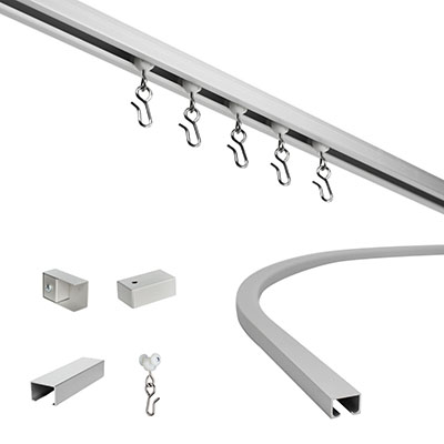 U-Shape Privacy Curtain Kit is designed for beds in hospitals, nursing homes, doctors' offices, laboratories and other types of facilities that use hospital-style privacy curtains. It can also be used in residential and commercial applications. It is an extruded aluminum cubicle curtain track and measures 1-1/8" wide x 3/4" high. The curtain fabric is made of a 100% FR Polyester antimicrobial finish. It is NFPA 701 Compliant and is washable. The track is aluminum and can be trimmed on-site with a hacksaw or electric chop saw. The kit includes 1x Curtain Track (96" x 60" x 96") + Hardware, 1x Grey Privacy Curtain (282" W x 96" H) with Tie Band, 1x Curtain Wand (36" H).