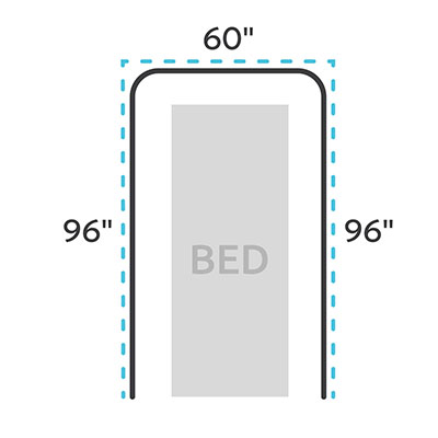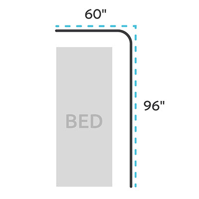 L-Shape Privacy Curtain Kit is designed for beds in hospitals, nursing homes, doctors' offices, laboratories and other types of facilities that use hospital-style privacy curtains. It can also be used in residential and commercial applications. It is an extruded aluminum cubicle curtain track and measures 1-1/8" wide x 3/4" high. The curtain fabric is made of a 100% FR Polyester antimicrobial finish. It is NFPA 701 Compliant and is washable. The track is aluminum and can be trimmed on-site with a hacksaw or electric chop saw. The kit includes 1x Curtain Track (60" x 96") + Hardware, 1x Grey Privacy Curtain (174" W x 96" H) with Tie Band, 1x Curtain Wand (36" H).