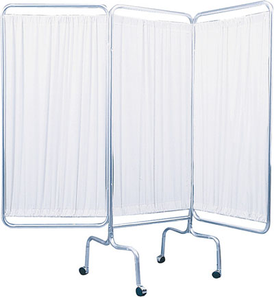 Help ensure the privacy of your patients by including this Three Panel Privacy Screen in your exam rooms. Each panel is 6 mil white vinyl, guaranteeing nothing is seen from one side to the other. Solid and sturdy, the panels are framed by 1" diameter anodized aluminum tubing. Each hinged panel measures 56" x 27.5", making certain there's plenty of coverage for patients of any size. Four wheels and a weight of only 15 lbs. allow the Privacy Screen to be relocated with ease. Please note, some minor assembly is required. Because the panels fold in on each other, the unit stores practically flat against the wall, remaining out of the way until needed. The panels are flame retardant, offering a safety measure lacking in most other privacy screens. The 3" hooded casters help give the privacy screen a clean, modern appearance. Perfect for busy medical facilities as the screens are bacteriostatic, prohibiting the growth and reproduction of bacteria. Easy to clean needing only some warm water and soap.