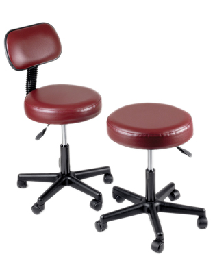 Therapy stool with round, 3" upholstered swivel seat allows easy access for the patient and to equipment. Gas spring for easy raising and lowering of stool (18-22").