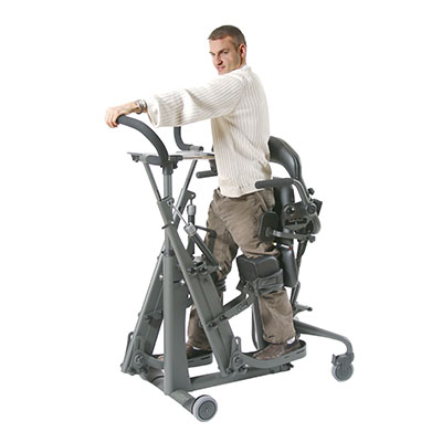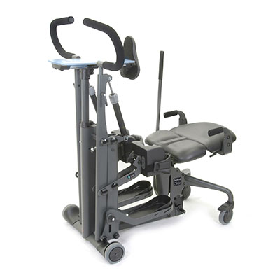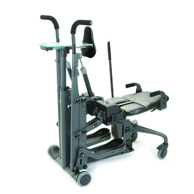 Modular design makes the EasyStand Evolv the most versatile standing frame available. The Evolv is a modular "sit to stand" stander with over 60 support and positioning components. The base unit is functional for many users, however when more support is needed a wide variety of positioning components can be added to accommodate the most involved users. Fits individuals 4'-5'6" tall and up to 200 lbs. The seat depth range (from seat pivot) is 14″-19″ and the seat height is 21.5". The upholstery is black and the frame comes in charcoal. The unit weighs 101 lbs. The moderate support package includes(no substitutions): Easy-Adjust Seat Depth, Swing-Away Front, Adjustable/Removable Actuator Handle, Large Contoured Chest Pad, Secure Foot Straps, Hip Supports, Independent Knee Pads for Swing-Away, Removable Flat Back, Velcro Positioning Belt, Chest Strap, Accessories Mounting Bracket, Lateral Supports, Planar Seat, Multi-Adjustable Foot Plates, Black Molded Tray, 5" Front Wheels, 5" Rear Locking Casters.
