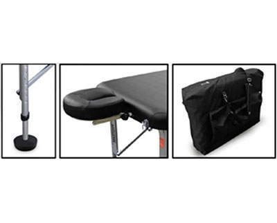 The Portable Treatment/Sideline Table is a convenient and easy-to-use treatment table. It is lightweight and simple to set up making it the perfect choice for both indoor or outdoor care. The aluminum frame weighs only 30 lbs. and can hold up to 600 lbs. The height is adjustable, with a push of the button it can be adjusted from 24" to 32" high. The top is very spacious at 73" long and 28" wide, to accommodate any patient. The pad is made of 2.5" thick multi-layered semi-firm foam and is covered by comfortable black urethane upholstery. The Portable Treatment/Sideline Table comes with an adjustable face cradle with ultra-soft face cushion, and a carrying bag with a shoulder sling for ultimate portability.