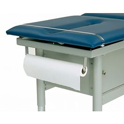 Optional Paper Holder for Tri W-G Hi-Lo Treatment Tables with Storage. Paper holder is exclusive to Tri W-G products. The Paper Holder easily stores paper for use with treatment table. As its strategically positioned underneath treatment table, it provides an easy way to cover the table for a safe and clean environment. The holder is factory installed if purchased at time of sale. If purchased after sale, minimal installation will be required on-site. It's suitable for all three Tri W-G treatment table models (TG2002, TG2010, TG2006).