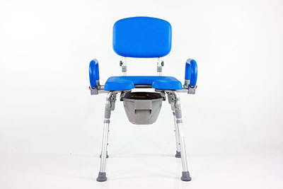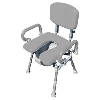 30 Degrees of Tilting for Enhanced Comfort and Positioning in the Shower. Versatile 3-in-1 design enables this model to easily be positioned over a standard toilet, used as a portable self-contained commode or shower chair. Simply and quickly adjust the height to achieve the ideal seated position. Padded flip-back armrests provide superior support and create a comfortable, non-slip surface for a safe and secure grip when sitting or standing. Easy to empty commode bucket to reduce splashes and spills. Use commode liners for even quicker clean up and less mess! Durable and easy-to-clean padded seat. Adjustable Back Upholstery for Added Comfort. Seat opening allows for unobstructed access to the perineal area for easy and effective cleansing. Swing-away detachable footrests with height and angle adjustments. Both lightweight and durable the rust-resistant aluminum frame supports up to 300 lbs.