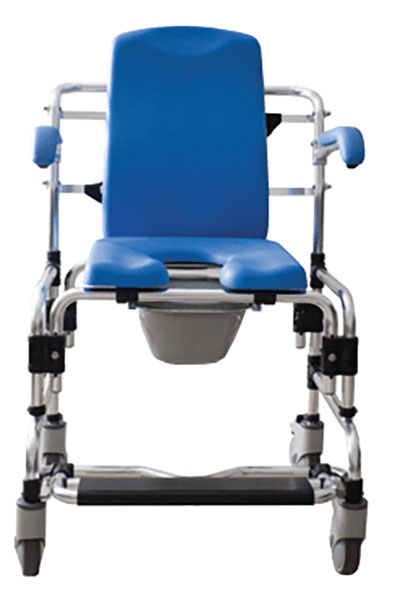 The Caspian Professional Mobile Shower Commode chair is ideal for users looking to maximize functionality with a single shower unit. Designed with institutional grade 5" casters, the Caspian can be used to transport the user to and from a showering area without the need to transfer to additional transport devices. An open base design and standard commode pail and splash guard allows the Caspian to be used as a commode chair, as well as providing additional accessibility by allowing the chair to be wheeled directly over a standard toilet. All aluminum construction delivers years of reliable use. Overall Height: 43". Overall Width: 24". Distance from floor to seat: 17" to 20.5". Seat depth: 15.75". Distance between armrests: 22". Casters: 5" with locking mechanism. Includes one pail, one lid and one splash guard. Weight capacity of 330 lbs.