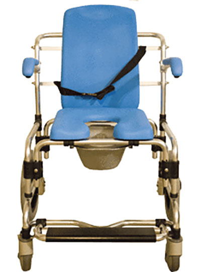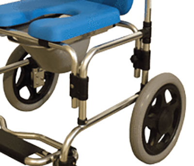 For bathrooms or shower rooms where there are threshold issues, look no further than the Baltic Transporter Shower Commode Chair for a smooth transition between elevations. 5" front casters and 14" rear wheels make transporting and navigating over thresholds smooth and comfortable for the user. An open base design allows for the Baltic to be wheeled over a standard toilet, or used as a commode chair when used with the included commode pail. Overall Height: 43". Overall Width: 30". Distance from Floor to Seat: 17.5"-20". Seat Depth: 15.75". Backrest Height: 20". Internal Width: 22". Casters: 5" Front, 14" Rear. Includes one pail with lid and safety belt. Weight Capacity of 330 lbs.