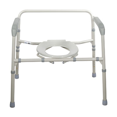Able to withstand a weight capacity of 1000 pounds, this heavy-duty bariatric commode by Drive Medical is designed with the extra space and comfort you need. Featuring a deeper and wider seat as well as padded arms and backrest this commode is great for everyday use. The armrests provide a comfortable place to rest on when sitting and indicate a safe place to grab, making sitting and standing easier. For consumers using a wheelchair the tool free drop arms makes lateral transfer to and from this commode easy and safe. The grey powder coated steel construction provides strength, and comes complete with an extra-large commode bucket that can be removed.