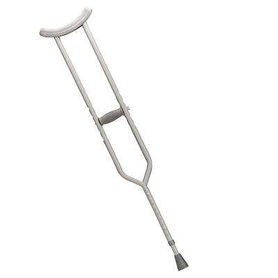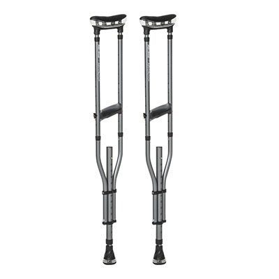 Lighter than wood, the standard underarm aluminum crutch provides stability and durability. Double extruded center tube provides additional strength to weight-bearing area. Push-pin adjustment makes it easy to adjust crutch height in 1" increments. Non-skid, jumbo size vinyl contoured tips provide excellent traction. Easy wing nut adjustments for hand grips. Youth crutches for user height 4'6" - 5'2". Weight capacity: 350 lb.