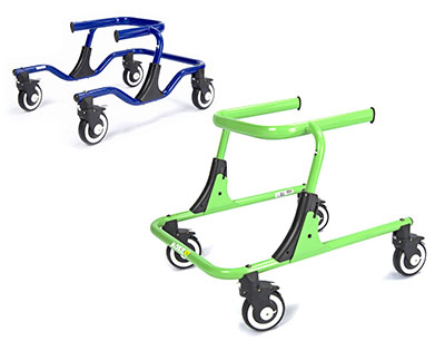 The Moxie GT Gait Trainer offers a tremendous amount of versatility to aid children or adults with stability while they improve their walking ability. The Moxie GT is a height adjustable gait trainer available in 3 different sizes. The Moxie GT can be used in either a posterior or anterior position. The small and medium Moxie GT are available in either green or blue frame colors. The large size is available in a grey frame color.