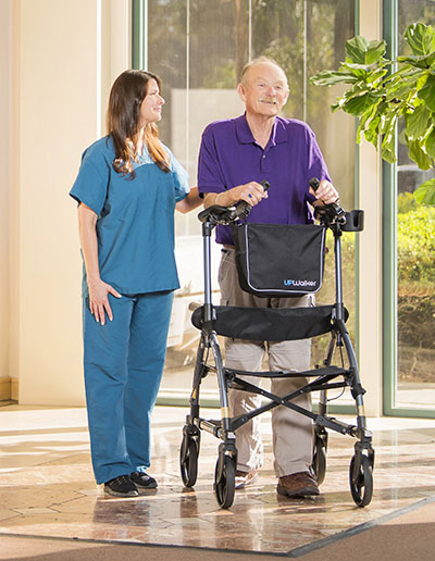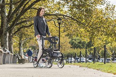 When people note that life is more about the journey than the destination, they clearly have the UPWalker from Life Walker in mind. The UPWalker is a revolutionary mobility product that has reinvented the walker. It enables users to walk upright in a safer, more secure posture as compared to traditional walkers and rollators that cause users to hunch over. Using the UPWalker gives users greater freedom and independence and has been shown to reduce back, wrist and lower limb pain, enabling users to walk farther with less effort. Because they are specifically sized, users feel safer, stop slouching and regain their independence. The sturdy frame is made from aluminum alloy and other quality materials, including composite plastic and polyurethane. Comfortable ergonomic handles include lockable hand brakes. The brakes stop the rear wheels and locks them in place. The front wheels lock to keep the UPWalker going in a straight line. The 8" diameter wheels ensure a smooth journey no matter the destination. In addition to the included seat, the UPWalker comes with a personal item bag, a beverage holder and a backrest support for sitting. This UPWalker is sized Large and is intended for users who are between 5'0"-6'4" and weigh less than 350 lbs. The UPWalker comes fully assembled with an easy-to-follow User Guide. It can be removed from the box, adjusted to personal settings and used immediately. Brakes also function as parking brake for sitting or standing from seated position. When folded, the unit is 36" x 10.5" x 40" making it transportable in the trunk or back seat of most cars and easy for storage. The wheels are made of soft, high-quality TPR rubber and are not inflated, meaning a flat tire will never stop the walking. Walking at night is safer as the UPWalker comes standard with safety reflectors.