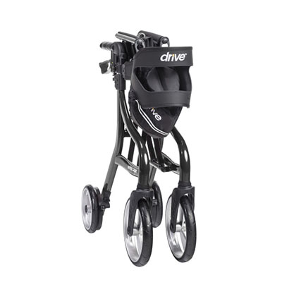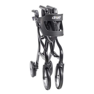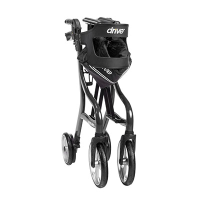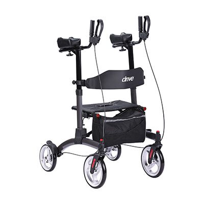 The Drive Elevate Upright Walker brings users increased balance and stability while promoting better posture and providing a more natural line of sight than traditional mobility aids. Height-adjustable upholstered forearm pads keep arms supported and level for comfortable use, while large, ten-inch wheels make it perfect for indoor and outdoor use. With a one-handed, side-to-side fold, the Elevate Upright Walker is the stand-up mobility aid that's easy to take on the go. Padded armrests and upright handle adjust to user height preferences. Durable and comfortable padded seat. Simple one-handed, side-to-side folding. Includes removable zipper storage bag with strap. Dual front fork for optimal stability and maneuverability. Loop lock brakes for added safety and control. Adjustable length dual handbrake system. Large 10" multi-terrain front wheels for indoor and outdoor use. Height adjustable backrest. Comes gray in color.