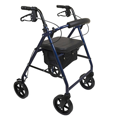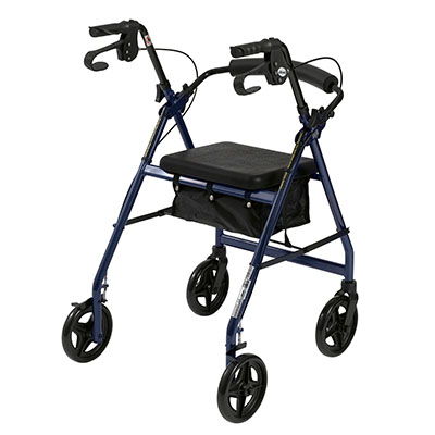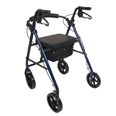 The ProBasics Bariatric Aluminum Rollator is made with an extra-strength, reinforced aluminum frame with a blue finish, and has large reinforced forks on 8-inch wheels for improved maneuverability and stability. The padded seat and removable padded backrest provide a comfortable resting area. It features easy-to-operate ergonomic hand brakes, a water-resistant nylon pouch, and a built-in fold strap for easy storage and transport. Supports patient weights up to 400 pounds.