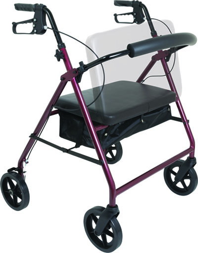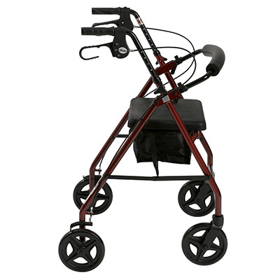 The ProBasics Bariatric Aluminum Rollator is made with an extra-strength, reinforced aluminum frame with a burgundy finish, and has large reinforced forks on 8-inch wheels for improved maneuverability and stability. The padded seat and removable padded backrest provide a comfortable resting area. It features easy-to-operate ergonomic hand brakes, a water-resistant nylon pouch, and a built-in fold strap for easy storage and transport. Supports patient weights up to 400 pounds.