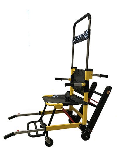 The LINE2design EMS Deluxe Heavy Duty Emergency Evacuation 4-Wheel Stair Chair has an extra sturdy 2" tubular welded frame in bright yellow for easy visibility. Specifications: Height: 41". Width: 21.5". Length: 31". Weight: 22 lbs. Max. Load: 400 lbs.