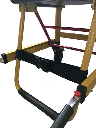 The Emergency Evacuation Standard 2-wheel stair chair, comes with a heavy-duty orange vinyl protective cover that is durable and easy to clean. It features 3 heavy duty quick release restraint straps to secure individuals during transport or while moving the patient up or down stairs. This stair chair also features 2 - 5″ rear wheels that make for easy transport on most surfaces. The front and back handles allow for easier handling. The back two handles are used to support the chair while moving the patient and are non-locking for an upward lift. The front two handles telescope out and lock into place to provide the best possible leverage when lifting the patient. The 3 safety straps should always be used while a patient is in the chair and it is recommended to always use the standard 2-wheel stair chair with two people for added safety. Weight capacity per chair is 350 pounds.
