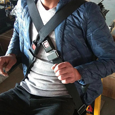 The Mobile Stairlift comes standard with a two-point seat belt, which is attached to the frame with two bolts on either side of the seat. This is the replacement factory 4-Point Seat Belt Harness for the Genesis and the LITE Mobile Stairlift that consists of two belts, which are fastened with a buckle, and have a loop at either end. Use it to securely keep the user in the chair without fear of falling out of it.