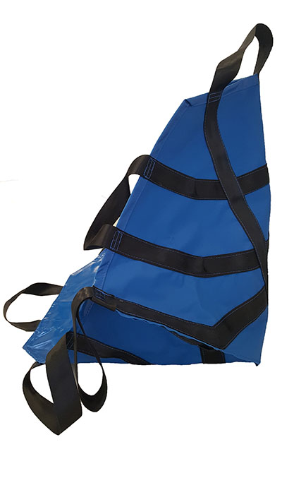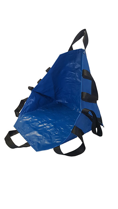 The Portable Transport Unit is made from a fluid-resistant, rugged, non-woven all impervious material. It features 8 heavy duty, black 1 1/2 webbing handles. The transport unit-seat is reusable and folds down to a size of 12 x12 inches for easy storage. The material comes in royal blue and is easy to clean. Measures 36 x 36 inches and has a weight capacity of 1,000 pounds.