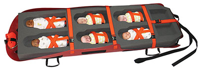 Med Sled Infant Insert Sleds are fully assembled, ready to use, can accommodate 3 or 6 infants in a single sled, and have a storage well for equipment. Ideal for newborn to 5-month-old infants not requiring life support.