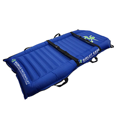 The Airlift Ease is a cutting-edge inflatable rescue stretcher that features a built-in inflation pump which ensures rapid deployment and compact storage. It inflates within one to two minutes to for a quick response in critical situations. Its lightweight design and rapid inflation make it ideal for emergency ambulance transfers, outdoor response, and efficient use in medical facilities. This inflatable stretcher is equipped with robust safety straps, providing stability during transfers and ensuring utmost security for patients. The ergonomic grips ensure secure and comfortable lifting, minimizing the risk of strain or injury for medical personnel. With its foldable and compact design, the Airlift Ease guarantees easy transportation and storage, making it an invaluable asset in emergency scenarios.