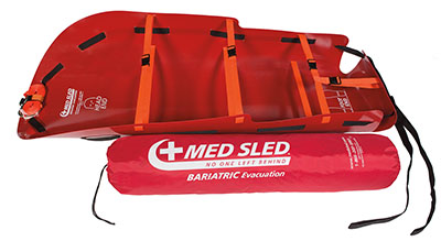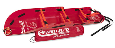 When timing is critical, the Med Sled makes it possible for anyone to evacuate a non-ambulatory individual, from a single-story building or down the stairwell of a multi-story building using a roll and drag method. The Med Sled is available in Youth, Standard, and Bariatric sizes. High Density Polyethylene, Decon Capable, Multi-Use, Stairwell Braking System, Patented Perimeter Tether, Foot Loop Strap, Drag-no lift method, Intuitive and Easy to Deploy.