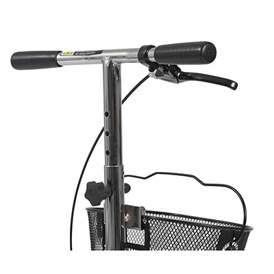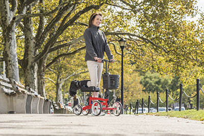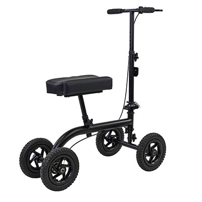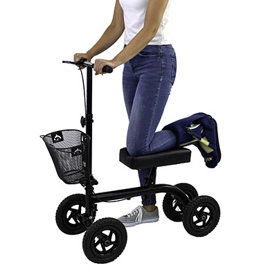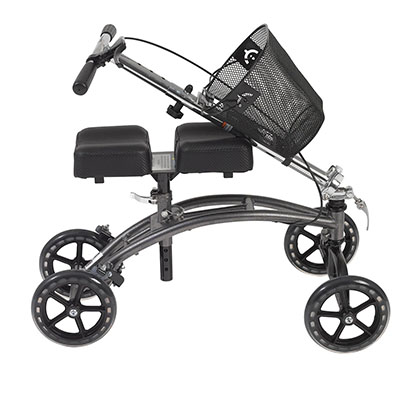 For those experiencing pain or discomfort following foot surgery, breaks, sprains or ulcers, the Dual Pad Steerable Knee Walker with Basket from Drive is a simple, comfortable, durable, and pain-free crutch alternative. Unlike other knee walkers that offer only forward-facing front wheels, Drive's Steerable Knee Walker features a fully maneuverable pair of front wheels for superior ease of use. Plus, the new two-piece leg pad provides superior user comfort. Tool-free height and left/right leg adjustments let users tailor the Knee Walker to their specific needs. The unit's 8" wheels make it ideal for indoor and outdoor use and the deluxe dual braking system helps maximize safety. The Dual Pad Steerable Knee Walker with Basket provides quicker mobility and enhanced safety and stability over crutches allowing you to better manage pain and recover more quickly. Weight capacity of 350 lbs.
