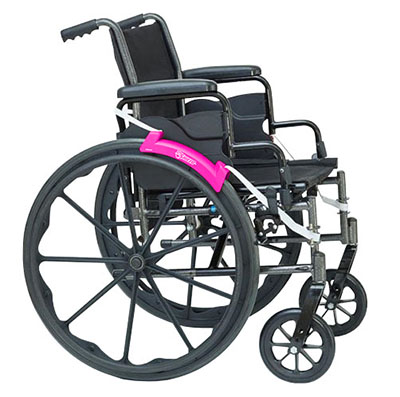 Improve your wheelchair's security with this simple and effective overhead anti-theft device. The device works by preventing the chair from being folded or placed into a confined space such as a car's trunk or back seat.