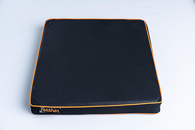 Experience the perfect blend of comfort and elegance with the Feather Cushion. Designed with both aesthetics and functionality in mind, this cushion is a must-have for wheelchair users who refuse to compromise on either. Crafted with medium-high density foam, the Feather Cushion provides unparalleled support and coziness, ensuring that you stay comfortable even during extended periods of sitting. Equipped with a water-resistant cover that is also breathable, it ensures a dry and pleasant experience, no matter the weather conditions. The non-slip bottom keeps the cushion securely in place, granting peace of mind even during movement-filled days. A sturdy carry handle makes the cushion easy to transport for hassle-free use. Available in three piping colors, these cushions are designed to beautifully coordinate with the full range of Feather wheelchairs, adding a personalized touch to your ride. The 18" Orange Feather Cushion is 2" thick and is a great add-on for the Feather Chair and Feather Transport Chair, or any brand for that matter. The Feather Cushion isn't just an accessory; it's an upgrade to your daily life. With its premium build and thoughtful design, you can now enjoy day-long comfort, enhanced mobility, and a pop of personalized color that reflects your unique style. With the Feather Cushion you can make life more comfortable.