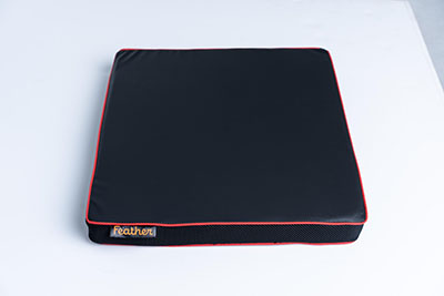 Experience the perfect blend of comfort and elegance with the Feather Cushion. Designed with both aesthetics and functionality in mind, this cushion is a must-have for wheelchair users who refuse to compromise on either. Crafted with medium-high density foam, the Feather Cushion provides unparalleled support and coziness, ensuring that you stay comfortable even during extended periods of sitting. Equipped with a water-resistant cover that is also breathable, it ensures a dry and pleasant experience, no matter the weather conditions. The non-slip bottom keeps the cushion securely in place, granting peace of mind even during movement-filled days. A sturdy carry handle makes the cushion easy to transport for hassle-free use. Available in three piping colors, these cushions are designed to beautifully coordinate with the full range of Feather wheelchairs, adding a personalized touch to your ride. The 18" Red Feather Cushion is 2" thick and is a great add-on for the Feather Power Chair, or any brand for that matter. The Feather Cushion isn't just an accessory; it's an upgrade to your daily life. With its premium build and thoughtful design, you can now enjoy day-long comfort, enhanced mobility, and a pop of personalized color that reflects your unique style. With the Feather Cushion you can make life more comfortable.
