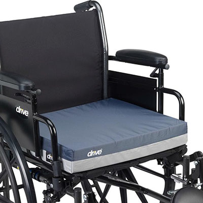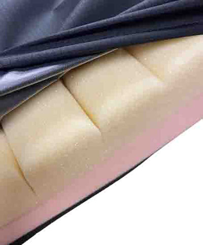 High density foam for seating comfort fits all standard wheelchairs. Cushion has a removable and washable cover
