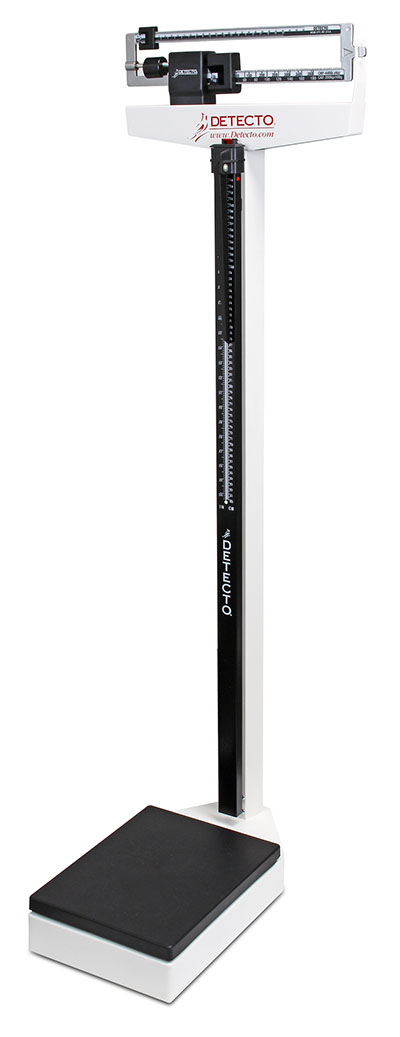 Detecto's innovatively designed eye-level mechanical weigh beam physician scale offers die-cast dual-readings from either side of the weigh beam and is imprinted on both sides, allowing the nurse and patient to both view weight simultaneously. They can be used in hospitals, clinics, doctor's offices, gyms, and even home use. They feature a heavy-duty solid stable 10.5 x 14.5 inch (27 x 37 cm) platform, and mild steel construction with powder coat paint finish for long-lasting quality. The scale is 59 inches (150 cm) high and does not include a height rod. The slip-resistant black platform cover may be removed for easy cleaning. The Detecto 337 Eye-Level Scale is available in the 440 lb /200 kg capacity.