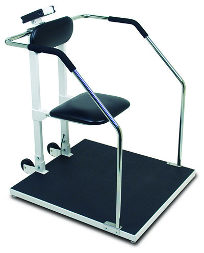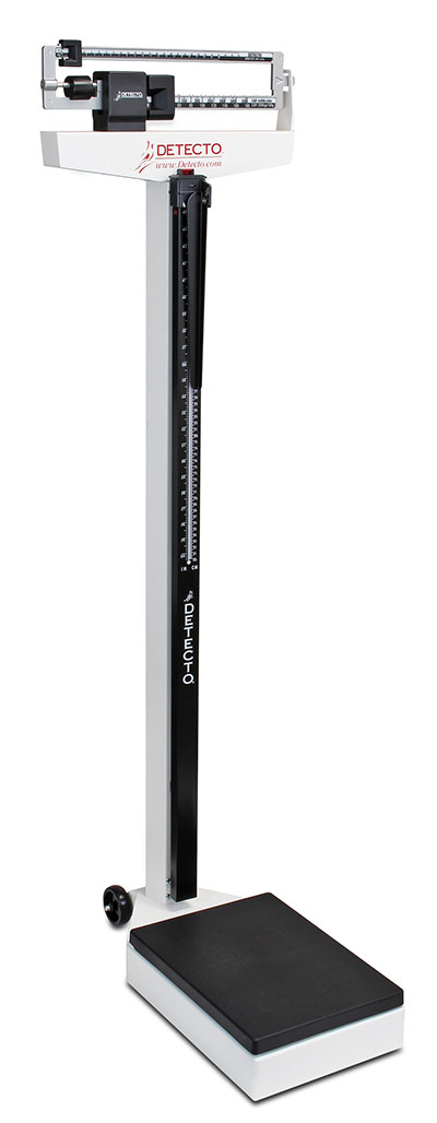 Detecto's innovatively designed eye-level mechanical weigh beam physician scale offers die-cast dual-readings from either side of the weigh beam and is imprinted on both sides, allowing the nurse and patient to both view weight simultaneously. They can be used in hospitals, clinics, doctor's offices, gyms, and even home use. They feature a heavy-duty solid stable 10.5 x 14.5 inch (27 x 37 cm) platform, and mild steel construction with powder coat paint finish for long-lasting quality. The scale is 59 inches (150 cm) high and includes a height rod for easy measuring. There are also wheels found at the bottom of the scale for increased mobility. The slip-resistant black platform cover may be removed for easy cleaning. The Detecto 338 Eye-Level Scale is available in the 440 lb /200 kg capacity.